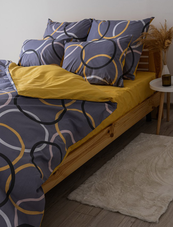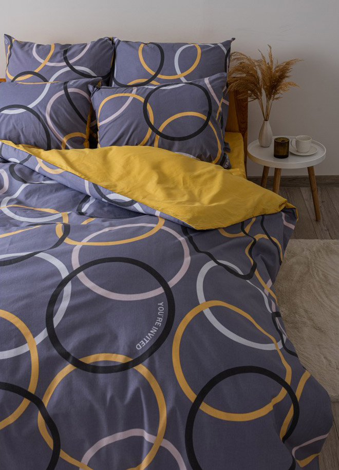 Бязевое постельное белье для вашей спальни. Вы обязательно оцените по достоинству красивое цветовое сочетание и стильный принт с кругами. Постельное белье выполнено из бязи — натуральной хлопковой ткани. Материал легкий, приятный на ощупь, прекрасно пропускает воздух, обеспечивает комфортный сон и отдых.