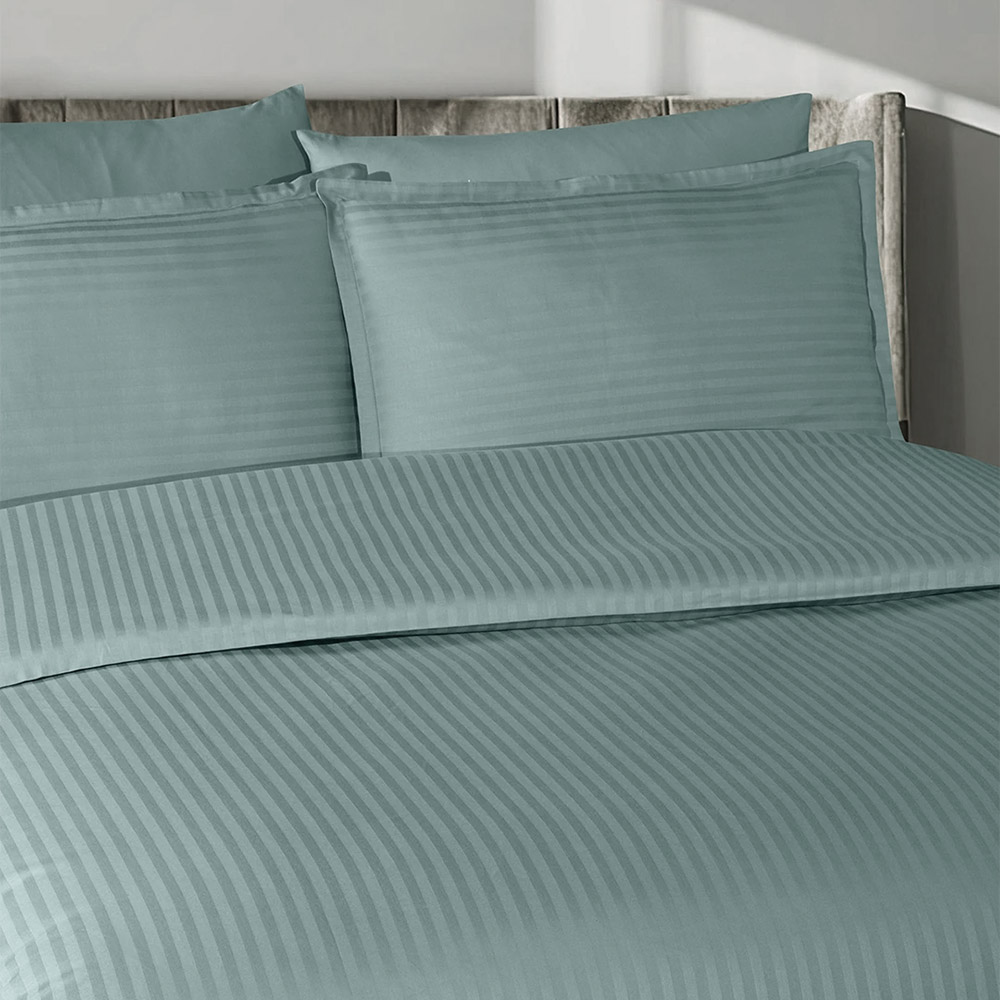 Однотонный комплект бирюзового цвета с красивыми рельефными жаккардовыми полосками. Постельное белье отлично дополнит современный интерьер, станет стильным акцентом в спальне.