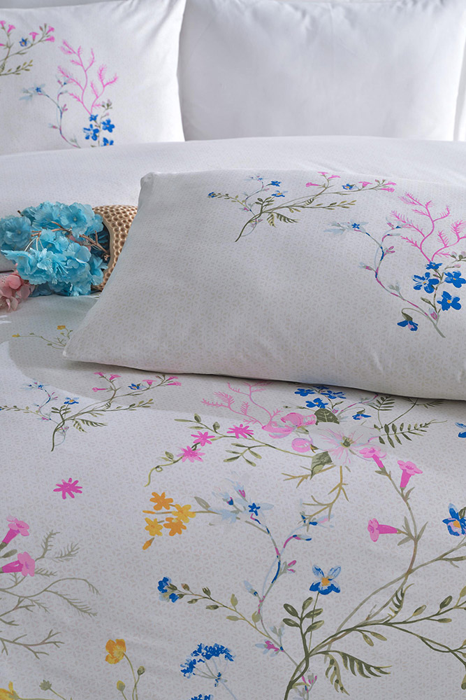 Постельное белье из ранфорса – это идеальное сочетание комфорта, качества и эстетики. Комплект белого цвета с красивым цветочным принтом, создаст в спальне атмосферу весны и гармонии. Качественная ткань из натурального хлопка приятная на ощупь, прочная и долговечная в эксплуатации. Она прекрасно пропускает воздух, гипоаллергенна, обеспечивает комфортный и здоровый сон.