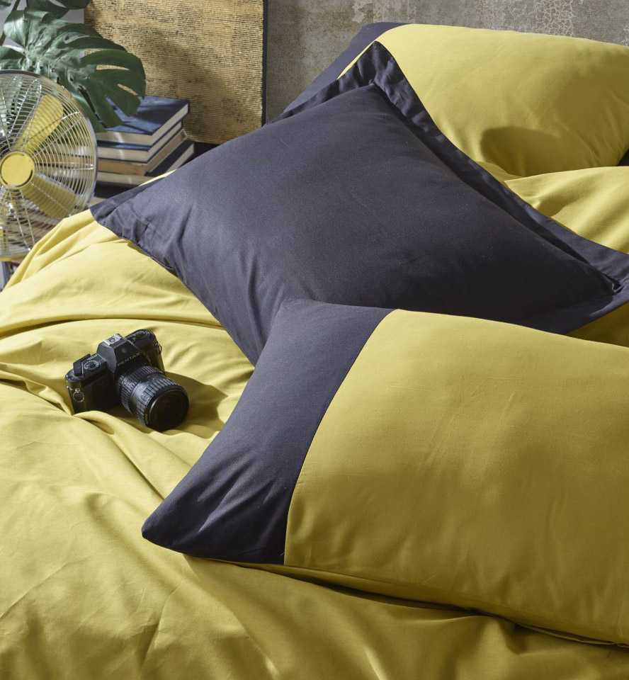 Двухцветный горчично-черный комплект из натуральной хлопковой ткани. Постельное белье станет стильным акцентом в интерьере, обеспечит уют и комфорт во время сна.