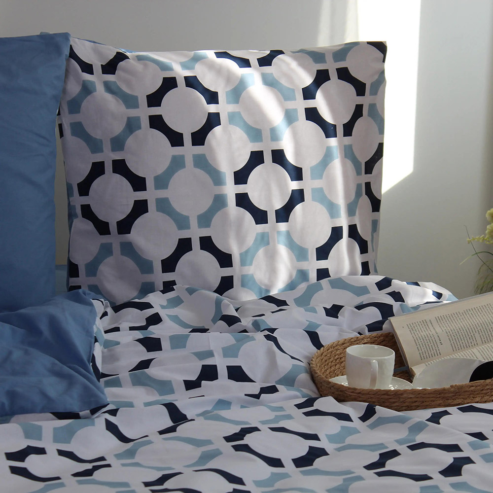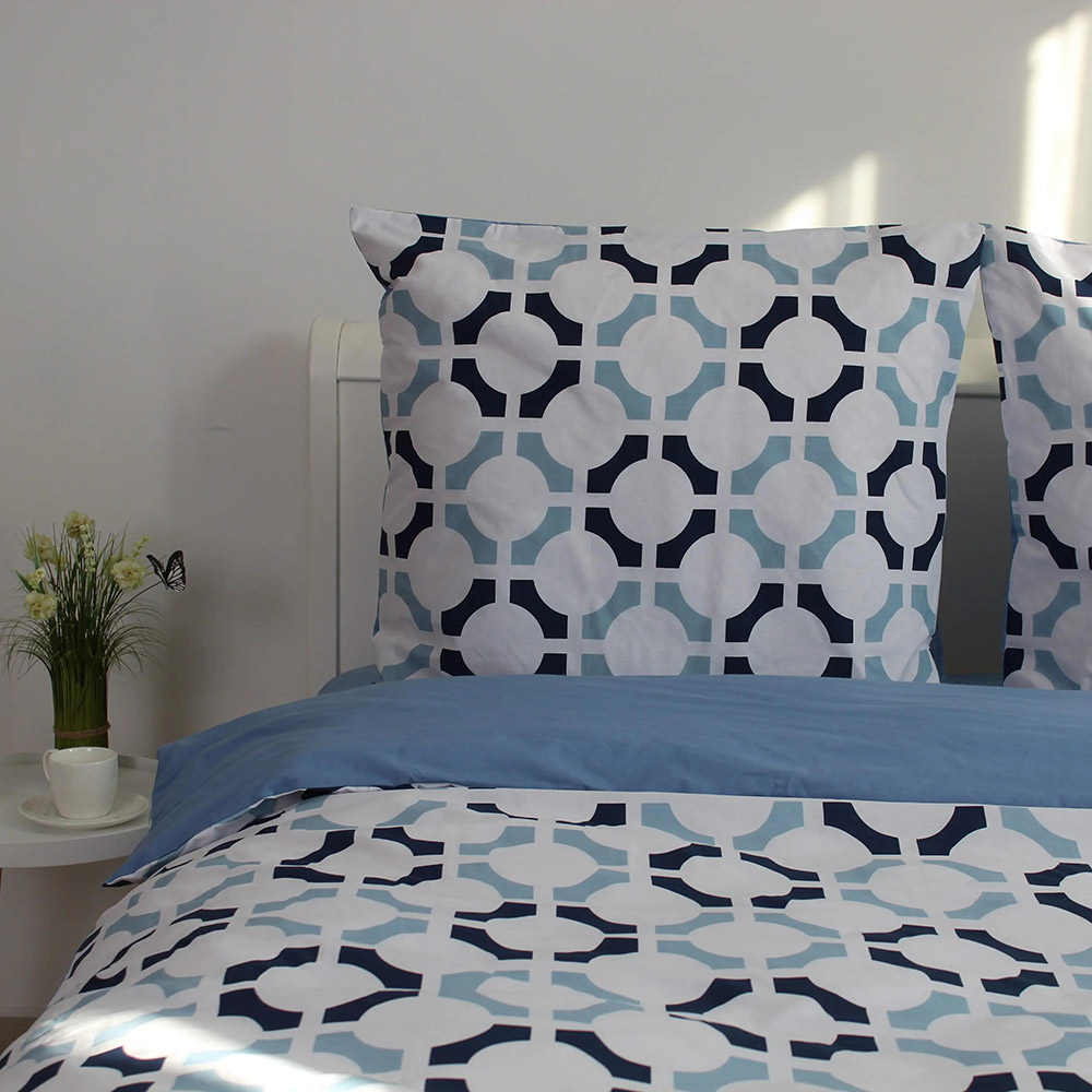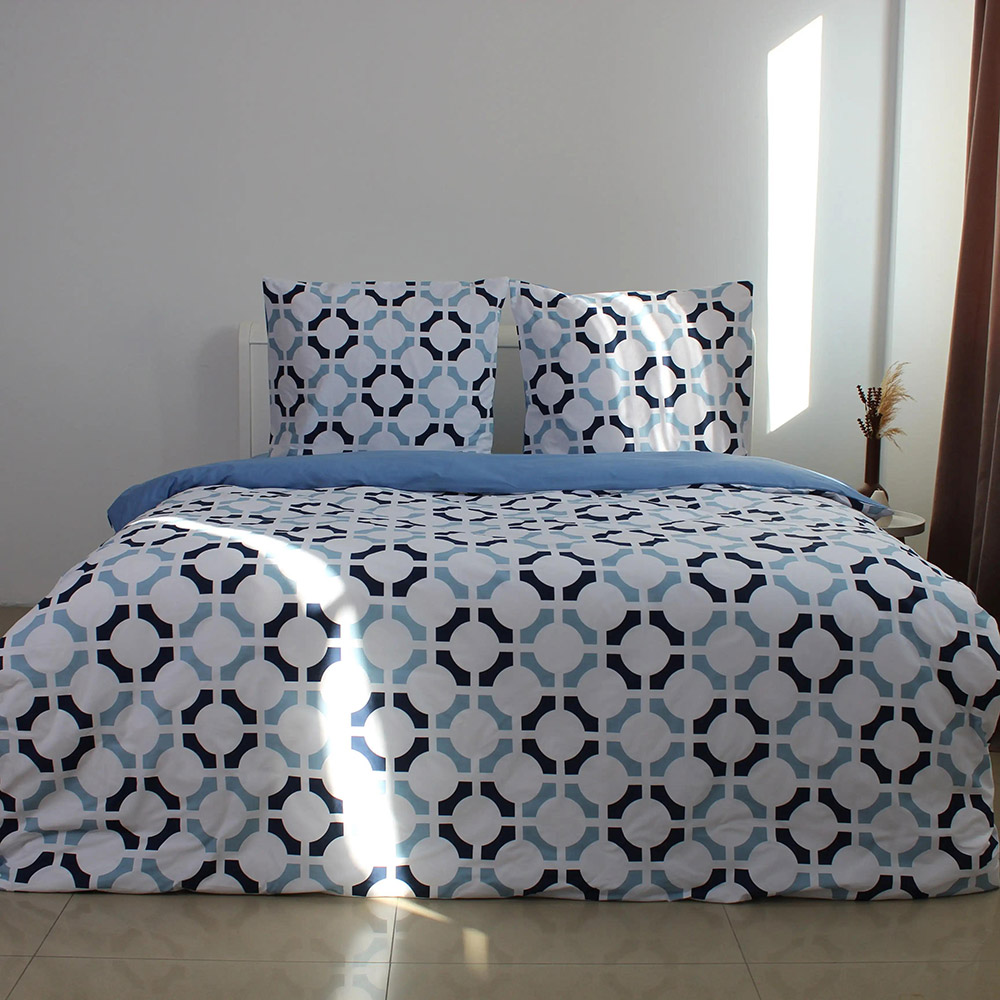 Постельное белье Ocean Grid ранфорс ТЕП. Постельное белье в бело-голубом цвете с красивым геометрическим узором, станет элегантным акцентом в спальне. Постельное белье выполнено из ранфорса — натуральной хлопковой ткани. Материал приятный на ощупь, отлично пропускает воздух, обеспечивает комфортный сон и отдых.