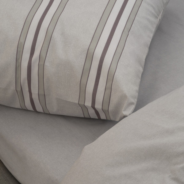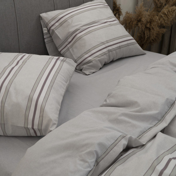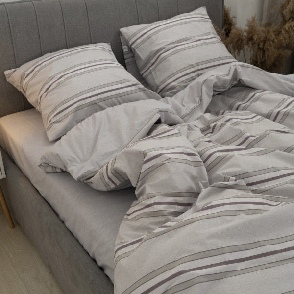 Постельное белье из ранфорса. Комплект серого цвета с принтом в полоску, смотрится стильно и актуально в любом интерьере. Качественная ткань из натурального хлопка обеспечит комфортный и приятный сон, прослужит долгое время, сохранив привлекательный внешний вид.