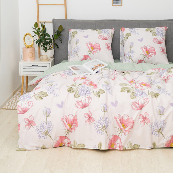Постельное белье из ранфорса. Комплект с красивым цветочным принтом, сделает комнату более уютной, создаст атмосферу весны и гармонии. Качественная ткань из натурального хлопка обеспечит комфортный и приятный сон, прослужит долгое время, сохранив привлекательный внешний вид.