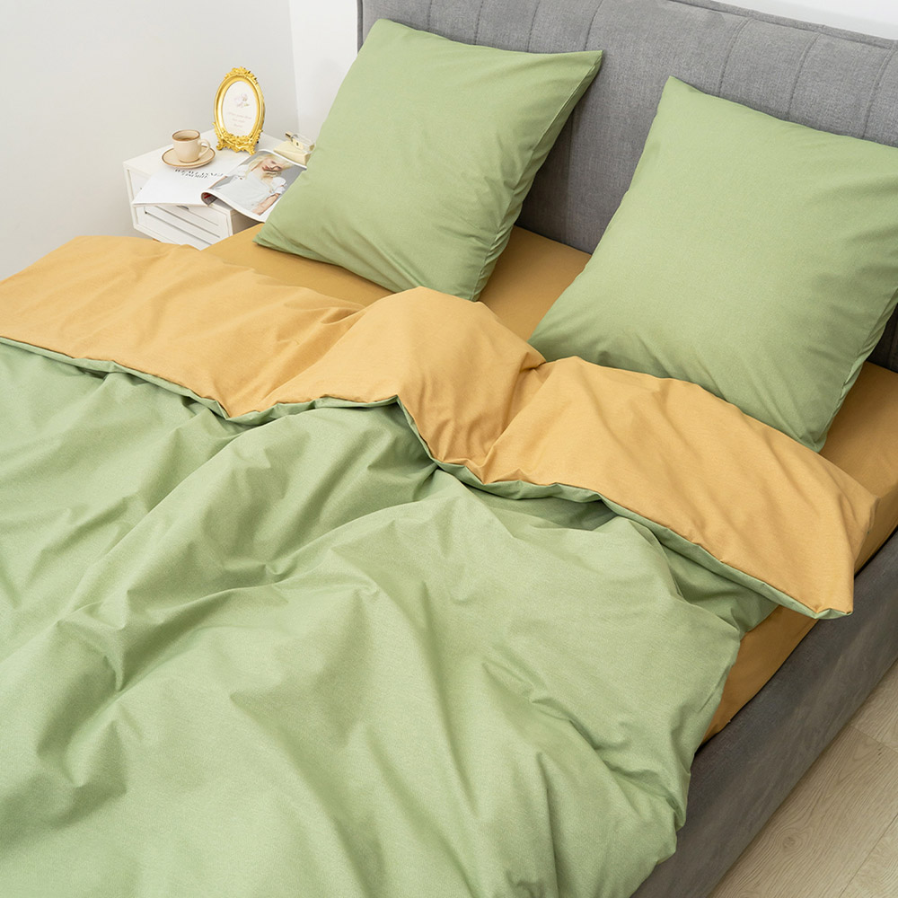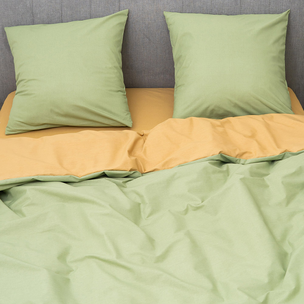 Постельное белье из ранфорса. Комплект в стильном двухцветном желто-зеленом дизайне, замечательно дополнит современный интерьер. Качественная ткань из натурального хлопка обеспечит комфортный и приятный сон, прослужит долгое время, сохранив привлекательный внешний вид.