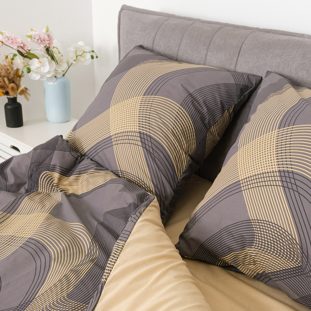 Постельное белье из ранфорса. Комплект в серо-бежевом цвете с абстрактным принтом, станет отличным решением для современного интерьера. Качественная ткань из натурального хлопка обеспечит комфортный и приятный сон, прослужит долгое время, сохранив привлекательный внешний вид.