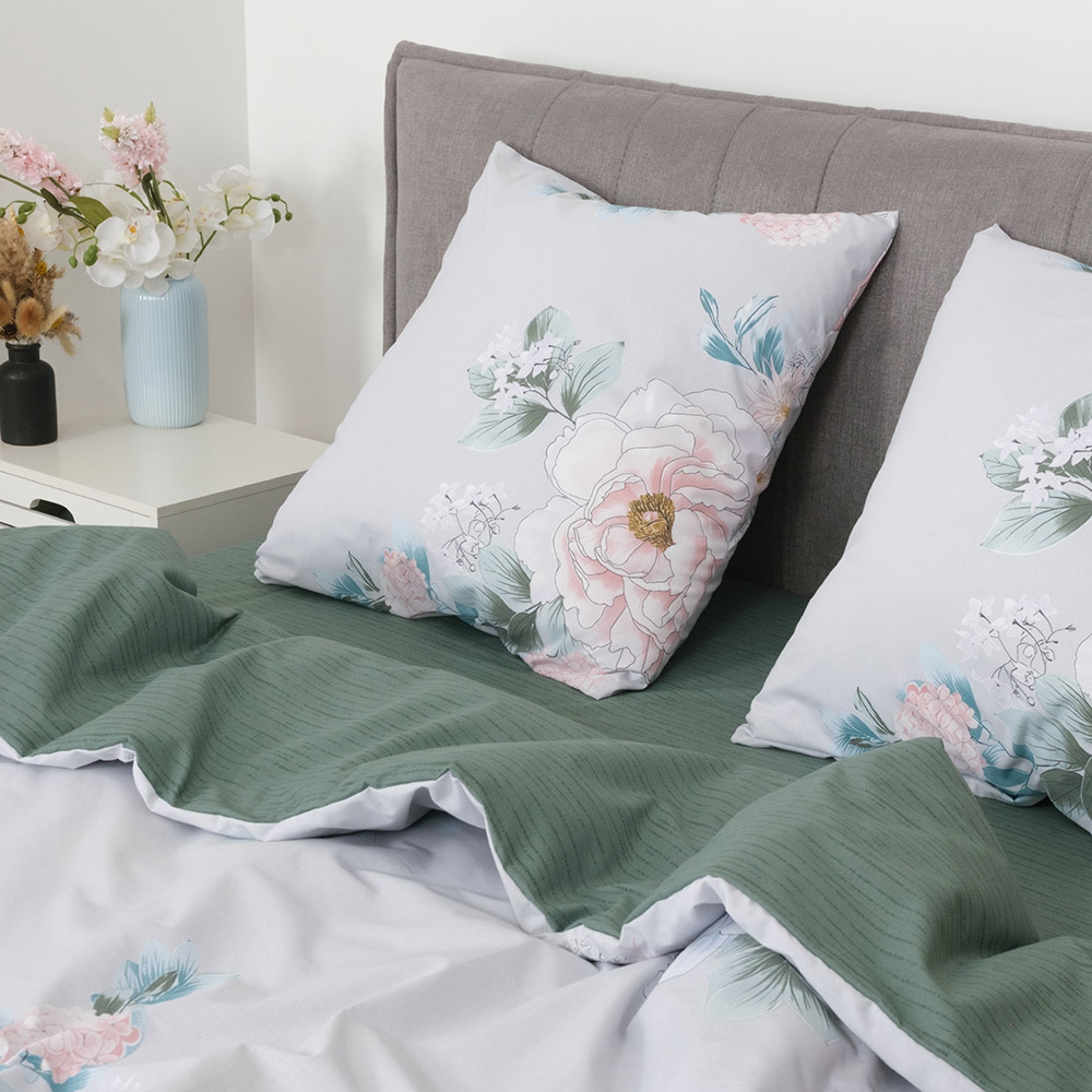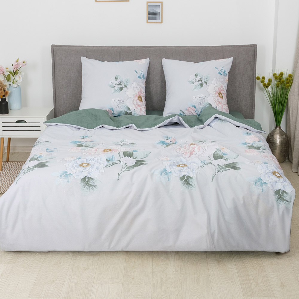 Постельное белье из ранфорса. Комплект в серо-зеленом цвете с изысканным цветочным принтом, станет нежным и элегантным акцентом в интерьере. Качественная ткань из натурального хлопка обеспечит комфортный и приятный сон, прослужит долгое время, сохранив привлекательный внешний вид.