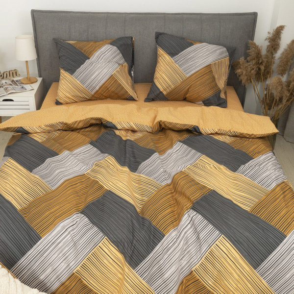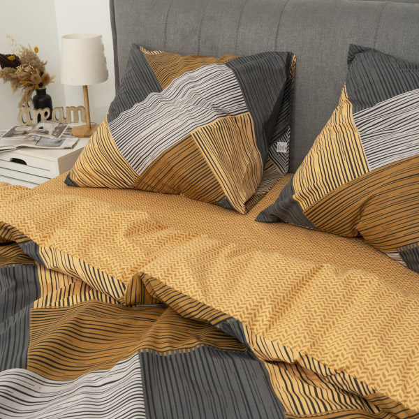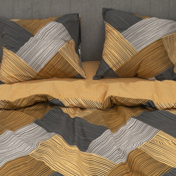 Постельное белье с абстрактным принтом. Комплект замечательно дополнит современный интерьер, станет стильным акцентом в спальне. Качественная ткань из натурального хлопка обеспечит комфортный и приятный сон.