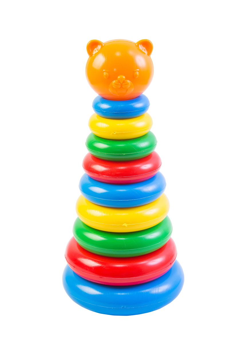 Игрушка развивающая "Пирамидка" - предназначена для раннего развития ребенка. Пирамидка - функциональная игрушка, которая способствует развитию важнейших умений ребенка: мелкой моторики рук, памяти, внимания и интеллекта. Обычно, играть с пирамидкой ребенок начинает в возрасте 6 месяцев, когда пытается или уже умеет сидеть. Нанизывая кольца на стержень, ребенок развивает координацию движений, знакомится с цветами, учится сравнивать предметы между собой, ища сходства и различия. Игра стимулирует развитие памяти, речи и мышления. Пирамидка состоит из колец разного размера и цвета, нанизанных на ось с основанием и колпачка. Кольца пирамидки приятные на ощупь и удобные для детских ладошек. Игрушка изготовлена из безопасных сертифицированных материалов. Состоит из 11 элементов. Игрушка предназначена для детей 1, но безопасна для малышей младшего возраста Упаковка - сетка.