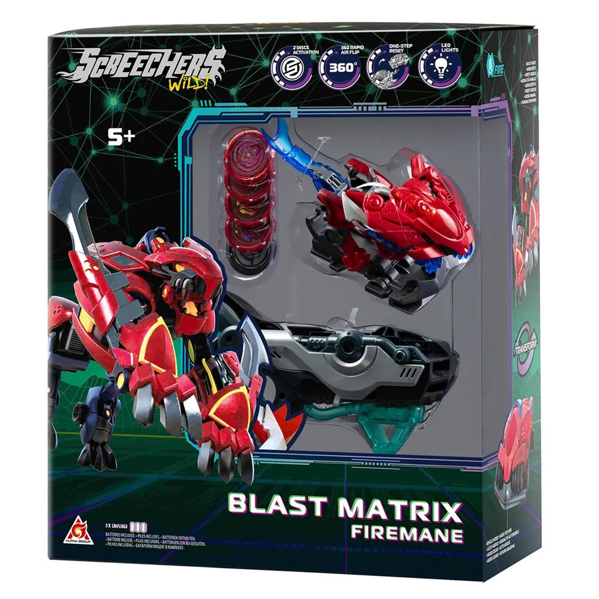 Игровой набор Файэрмен от Screechers Wild! открывает новые возможности для динамичных баттлов! Машинка-трансформер способна делать сальто на 360° и превращаться в мощного боевого зверя прямо в воздухе. Используй запускатель-бластер и магнитный энергодиск, чтобы активировать эффектную трансформацию. Придумывай стратегии, соревнуйся с друзьями и создавай собственные легендарные битвы в мире Screechers Wild!