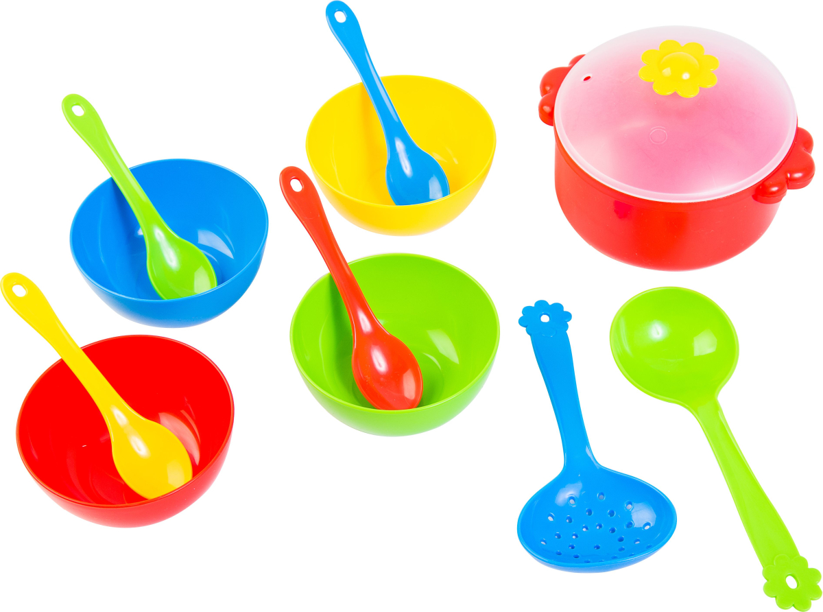 Іграшкова посудка від Тигрес виготовлена з безпечної харчової пластмаси і може використовуватися в мікрохвильовій печі і посудомийній машині.