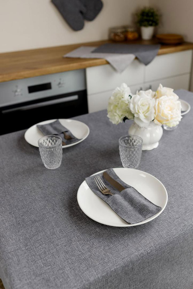 Чехол в минималистичном однотонном дизайне графитового цвета. Чехол замечательно дополнит сервировку стола. Чехол выполнен из ткани на основе хлопка и полиэстера, прочный и долговечный в эксплуатации.