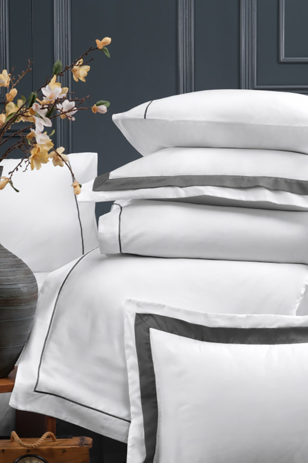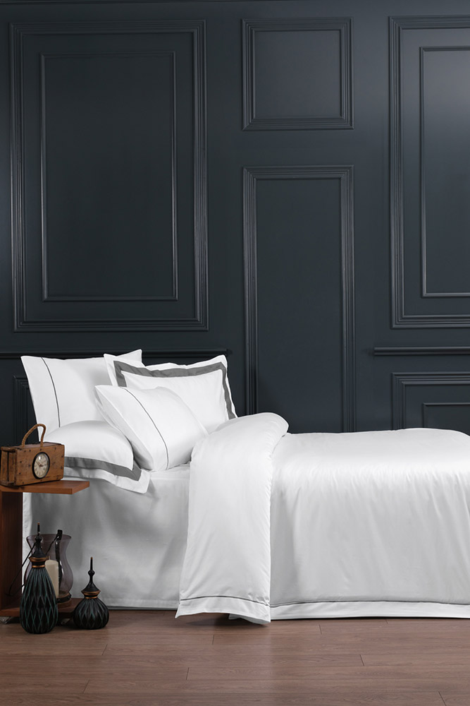 Роскошное постельное белье белого цвета с контрастным серым кантом. Элегантное решение для вашей спальни. Изготовленный из премиального сатина на основе 100% египетского хлопка, комплект обладает невероятной мягкостью и высокой прочностью. Высококачественный сатиновый материал создает идеальные условия для комфортного сна. Египетский хлопок отличается длинными волокнами, что делает материал нежным и шелковистым на ощупь, в то же время износостойким и долговечным в эксплуатации. Идеальный выбор для тех, кто ценит роскошь и качество в каждой детали.