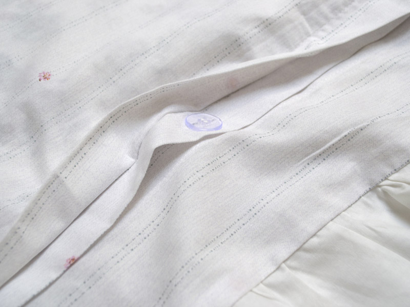 - Полуторный: пододеяльник 160х220(+12) см на пуговицах и с декоративными рюшами - 1 шт, простынь 160х230 см - 1 шт, наволочки 50х70(+12) см с декоративными рюшами - 2 шт.