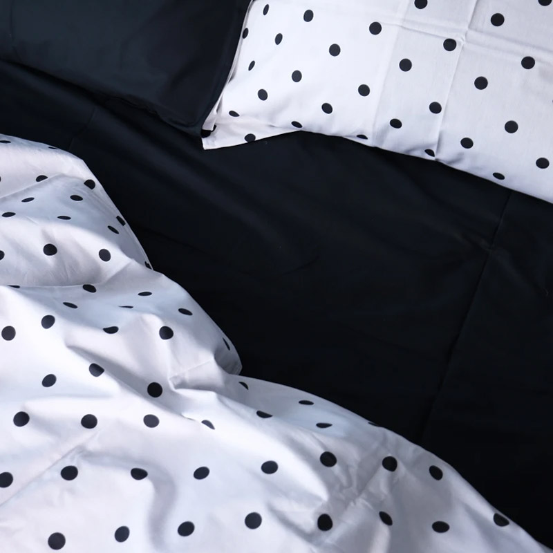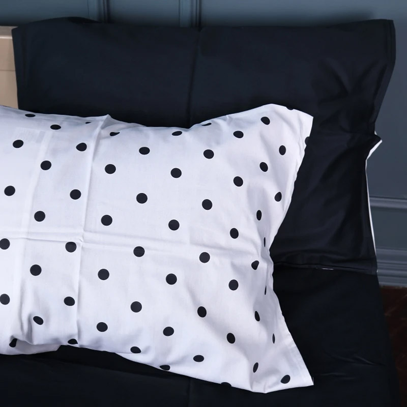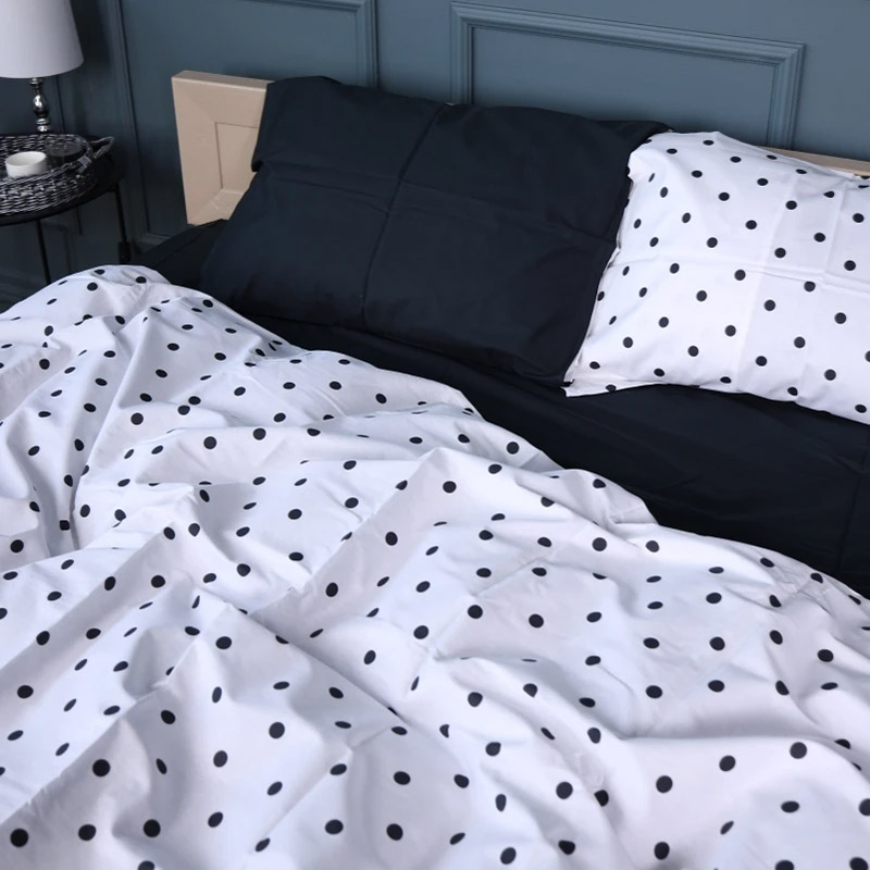 Сатиновый комплект в черно-белой гамме с симпатичным принтом в горошек. Постельное белье замечательно дополнит интерьер, станет красивым акцентом в спальне. Качественная ткань из натурального хлопка нежная и мягкая на ощупь, с гладкой фактурой, обеспечивает максимально комфортный и приятный сон.