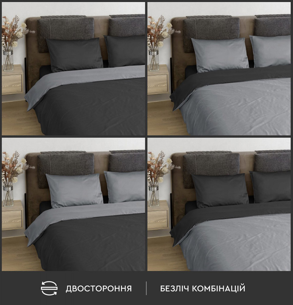 Двустороннее постельное белье Venezia премиум-сатин Sonex черный-серый