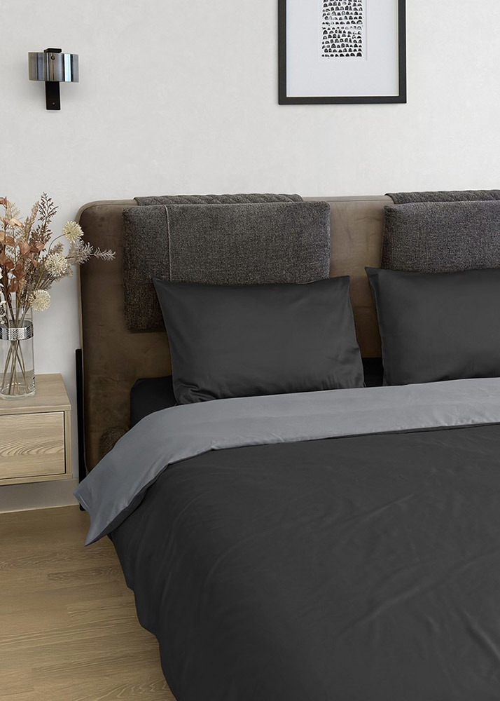 Двустороннее постельное белье Venezia премиум-сатин Sonex черный-серый.