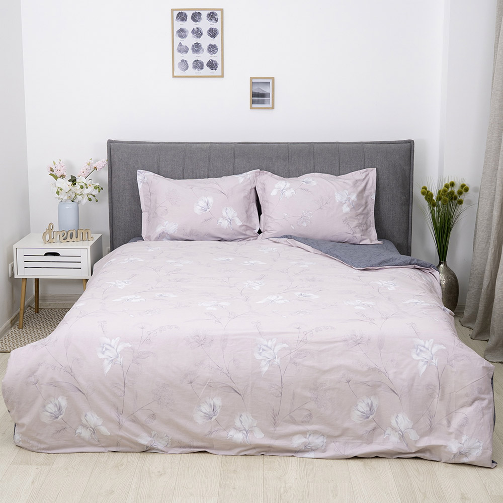 Постельное белье из высококачественного сатина класса люкс. Комплект пудрово-серого цвета с красивым цветочным принтом, наполнит интерьер уютом и гармонией. Ткань из натурального хлопка мягкая и приятная на ощупь, обеспечит максимально комфортный сон.