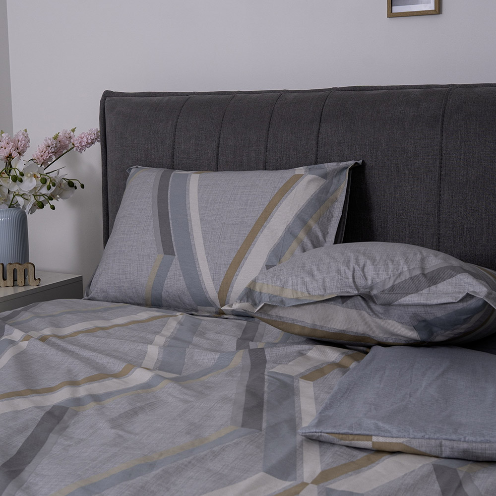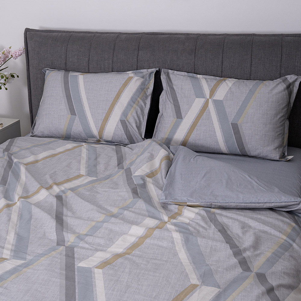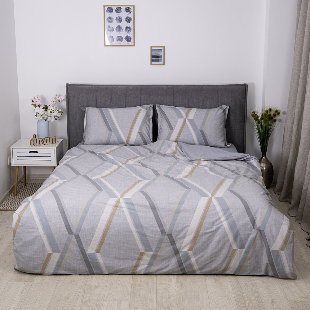 Постельное белье из высококачественного сатина класса люкс. Комплект серых оттенков с геометрическим принтом, станет отличным решением для современного интерьера. Ткань из натурального хлопка мягкая и приятная на ощупь, обеспечит максимально комфортный сон.