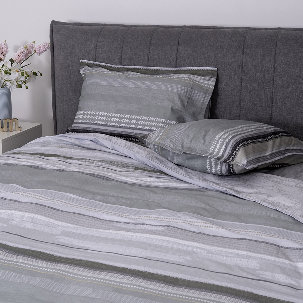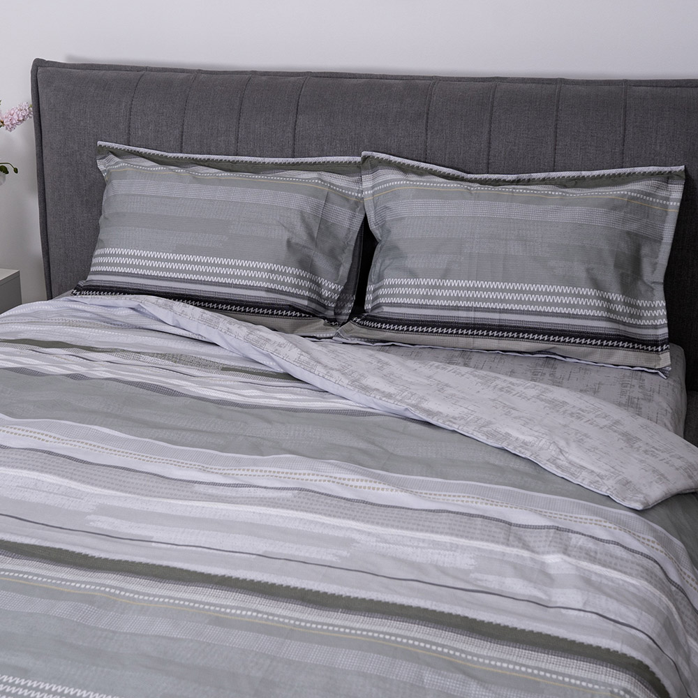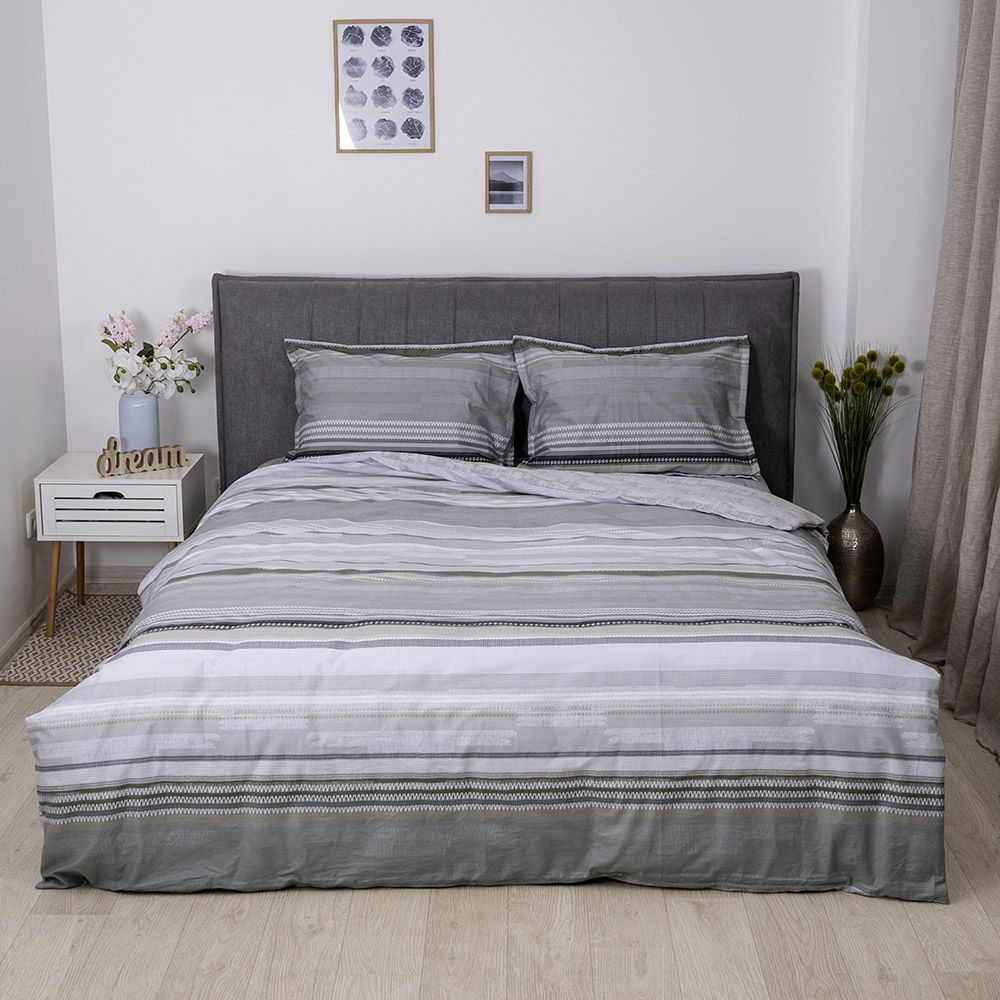 Постельное белье из высококачественного сатина класса люкс. Комплект серых оттенков с принтом в полоску, смотрится стильно и актуально в современном интерьере. Ткань из натурального хлопка мягкая и приятная на ощупь, обеспечит максимально комфортный сон.