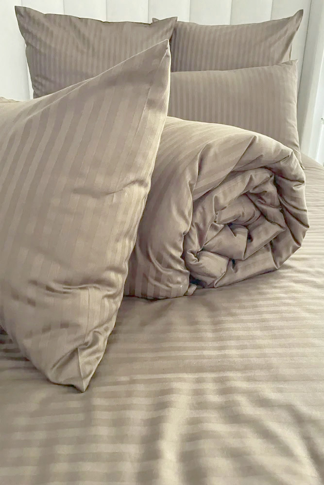 Однотонные сатиновые наволочки коричневого цвета с красивыми жаккардовыми полосками. Натуральная хлопковая ткань с гладкой шелковистой фактурой подарит вам максимально комфортный и приятный сон.