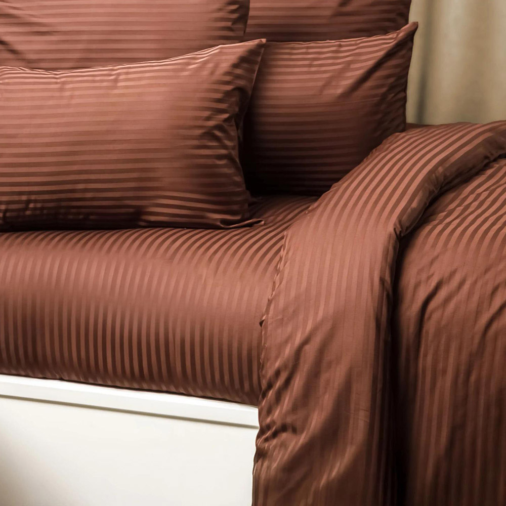 Пододеяльник из премиального страйп-сатина шоколадного цвета с красивыми жаккардовыми полосками. Качественная ткань из натурального хлопка нежная и мягкая на ощупь, отличается хорошей воздухопроницаемостью, прочная и износостойкая в эксплуатации, отлично сохраняет цвет и форму после стирок. Пододеяльник представлен в удобной и стильной упаковке (хлопковый мешочек) — практичное решение для хранения и транспортировки.