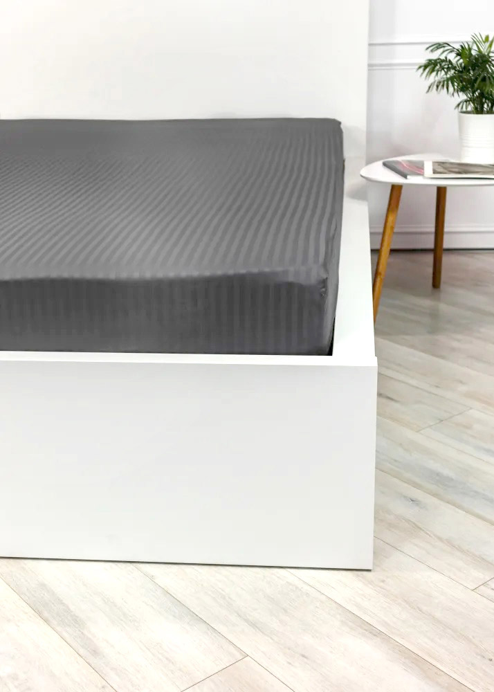 Простынь на резинке Grey сатин-страйп LightHouse