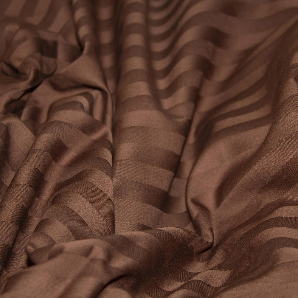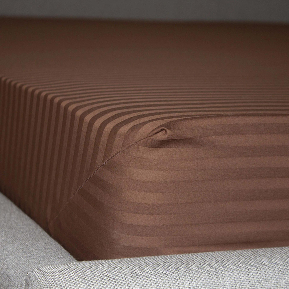 Однотонная простынь шоколадного цвета с красивыми жаккардовыми полосками. Простынь выполнена из мягкого качественного сатина. Благодаря эластичной резинке, простынь надежно фиксируется на матрасе, не сползает, не образует складок. Ткань из натурального хлопка нежная на ощупь, прекрасно пропускает воздух, дарит максимально комфортный и приятный сон.