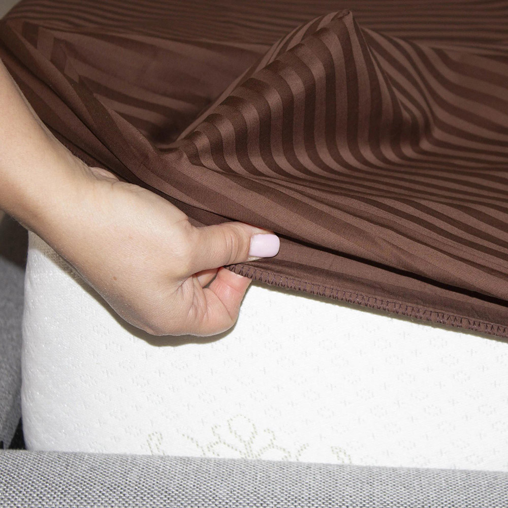 Простынь на резинке Chocolate страйп-сатин ТЕП