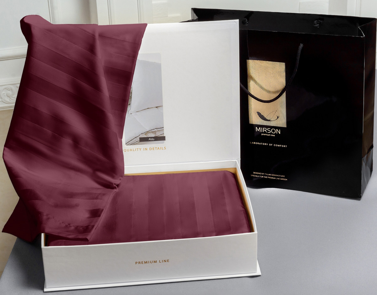 Постельное белье MirSon Aldo сатин-жаккард. Романтический сатиновый комплект, так и манит своим магнетизмом, благодаря насыщенному винному оттенку. Комплект сшит из элегантного итальянского сатина, ткани которая очень износостойкая и приятная на ощупь. Постельный комплект упакован в великолепную фирменную коробку, благодаря чему станет замечательным и эффектным подарком.