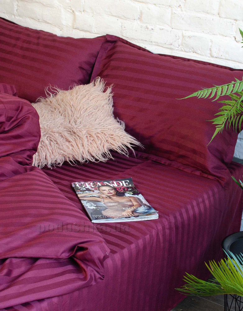 Элегантное сатиновое постельное белье бордового цвета с красивыми жаккардовыми полосками. Комплект станет королевским акцентом в интерьере и подарит вам максимально комфортный сон.