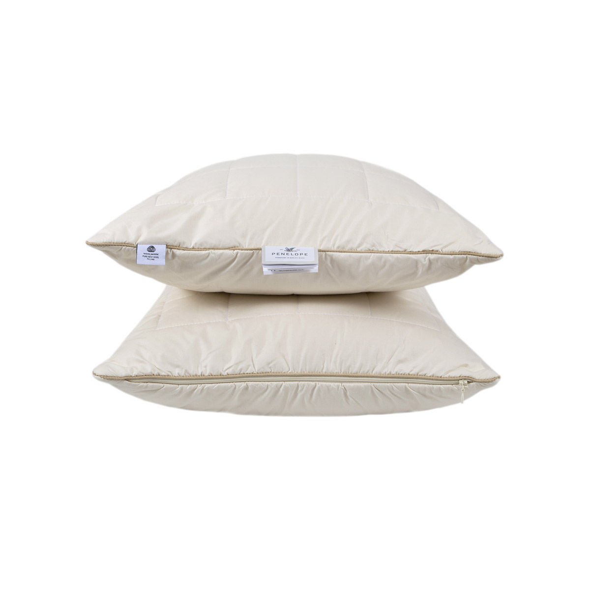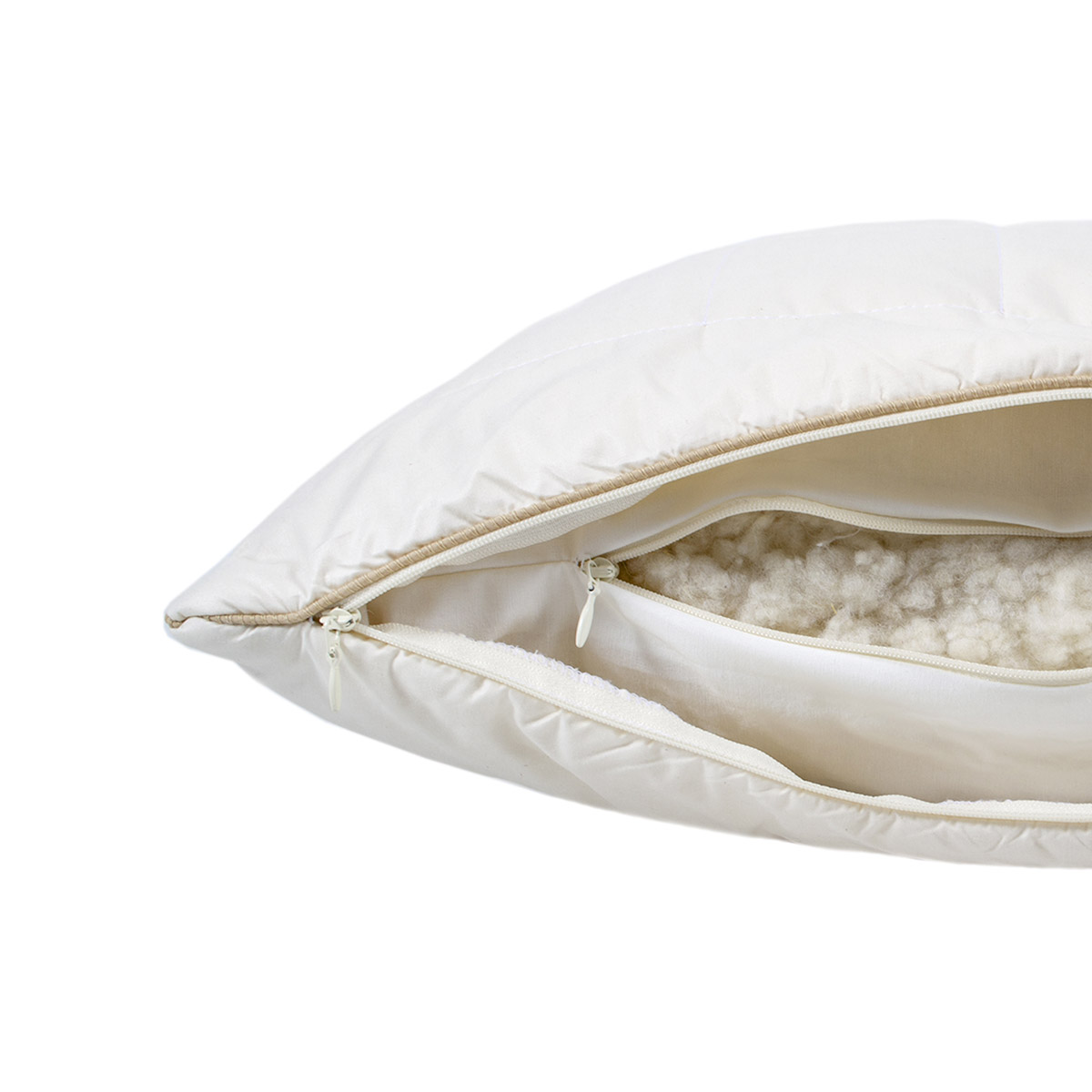 Добротная шерстяная подушка. Натуральный хлопковый чехол изнутри простёган полой шерстью Woolmark высочайшего качества. Шерстяные шарики заполняют внутренний чехол на молнии (можно регулировать степень жесткости и высоты). Шерсть – это натуральный дышащий материал, а, следовательно, подушка Wooly обеспечит баланс влажности и терморегуляцию во время сна. Характерная для шерсти плотность обеспечит комфортную поддержку в положении на боку и на спине.
