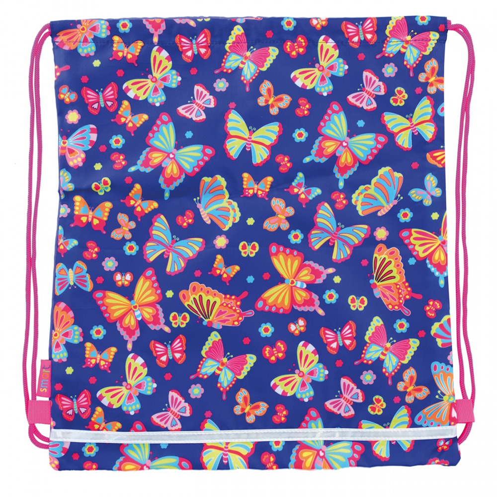 Сумка для обуви Smart SB-01 Butterfly dance 556104 для сменной обуви. Она гораздо удобнее рюкзака и существенно легче. Компактная, на шнурках-лямках, она изготовлена из прочной ткани с двойными швами.