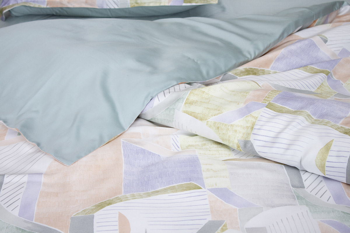 Постельное белье премиум-класса из тенсела. Комплект с разноцветным абстрактным принтом, стильный и оригинальный вариант для современного интерьера. Tencel (волокно лиоцелл) производится из древесины эвкалипта. Ткань из тенсела очень мягкая и шелковистая, хорошо пропускает воздух, подходит для людей с чувствительной кожей, обеспечивает максимально комфортный и приятный сон в любое время года.