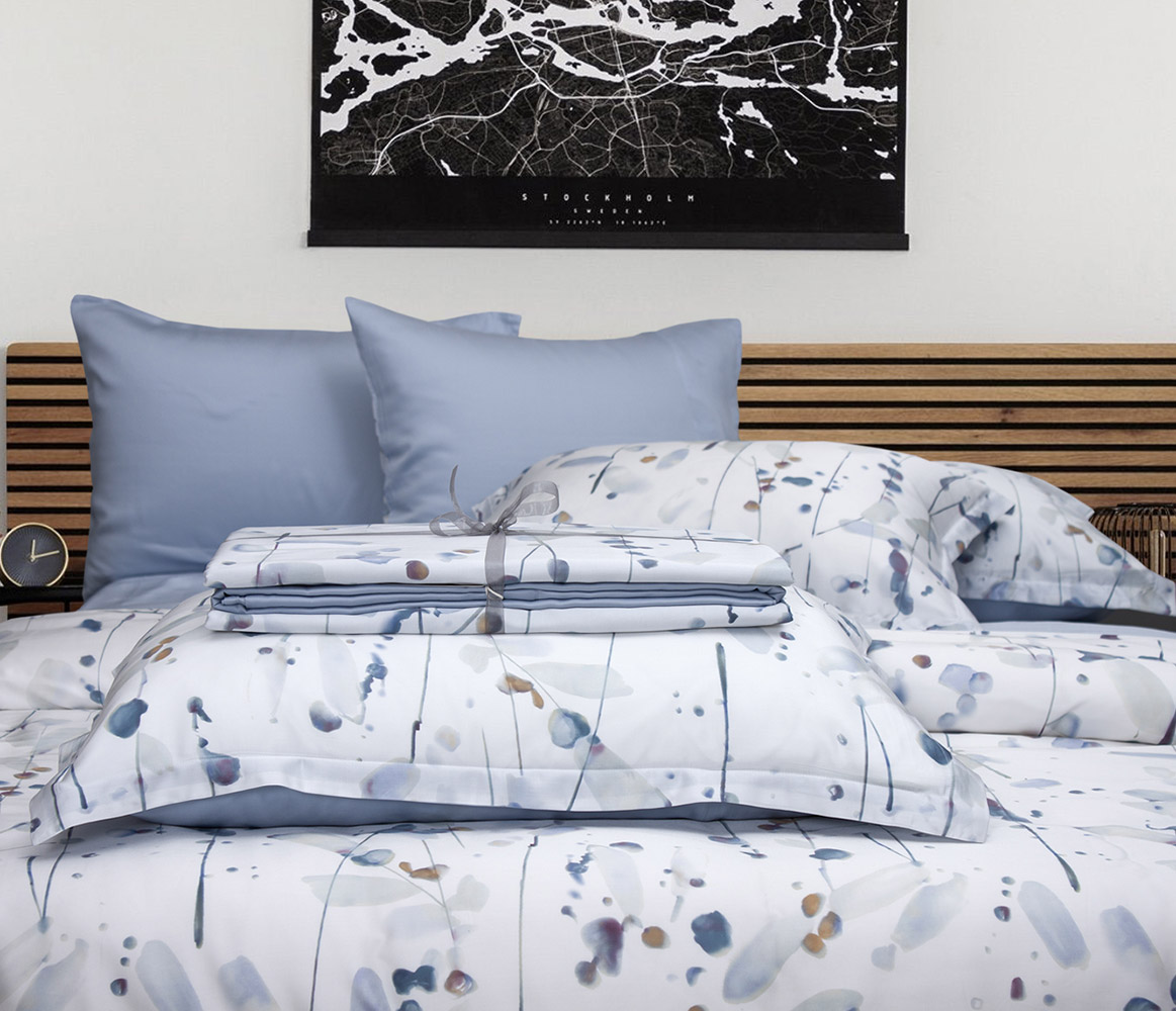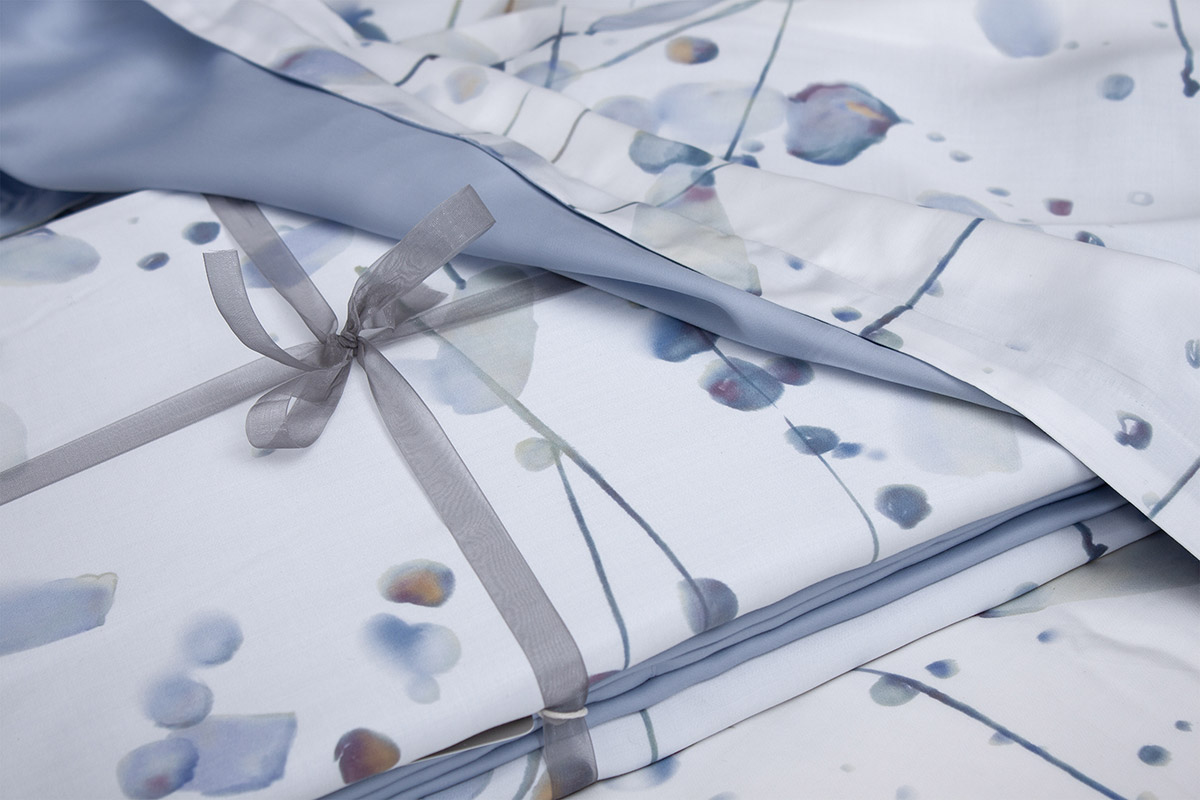 Постельное белье премиум-класса из тенсела. Комплект в бело-голубой гамме с красивыми растительными мотивами, станет изюминкой вашей спальни. Tencel (волокно лиоцелл) производится из древесины эвкалипта. Ткань из тенсела очень мягкая и шелковистая, хорошо пропускает воздух, подходит для людей с чувствительной кожей, обеспечивает максимально комфортный и приятный сон в любое время года.