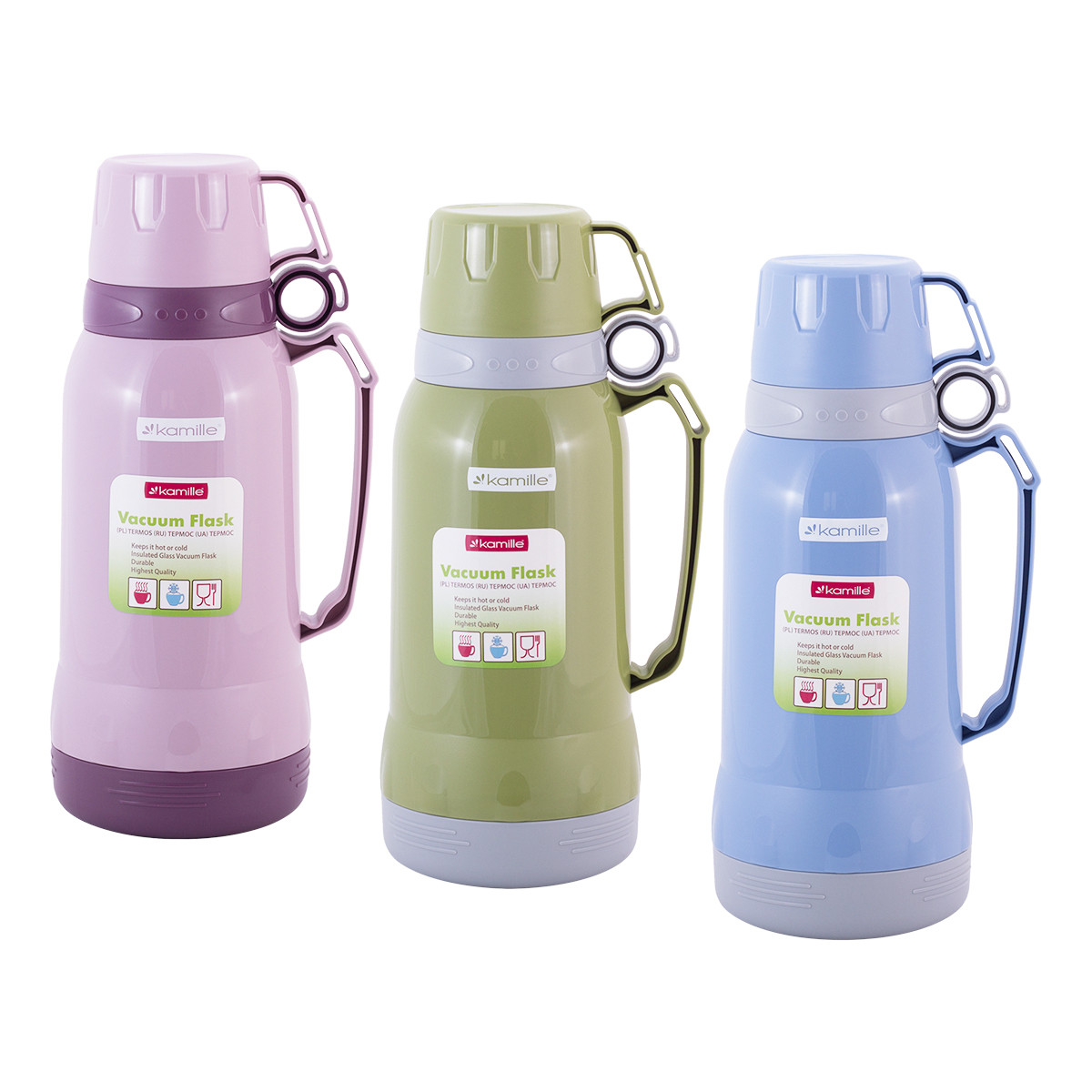 Термос Kamille 1800мл 2024 голубой пластиковый со стеклянной колбой обладает высоким качеством, надежностью, компактными размерами и эстетичным дизайном. Такой термос станет незаменимым в машине, на отдыхе или в путешествии. Особенности: