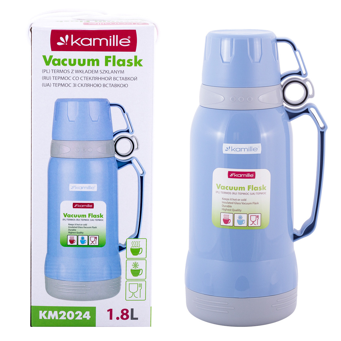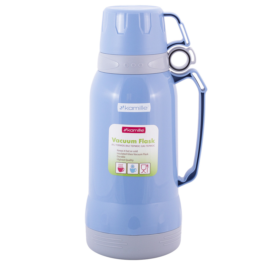 Термос Kamille 1800мл 2024 голубой пластиковый со стеклянной колбой обладает высоким качеством, надежностью, компактными размерами и эстетичным дизайном. Такой термос станет незаменимым в машине, на отдыхе или в путешествии.