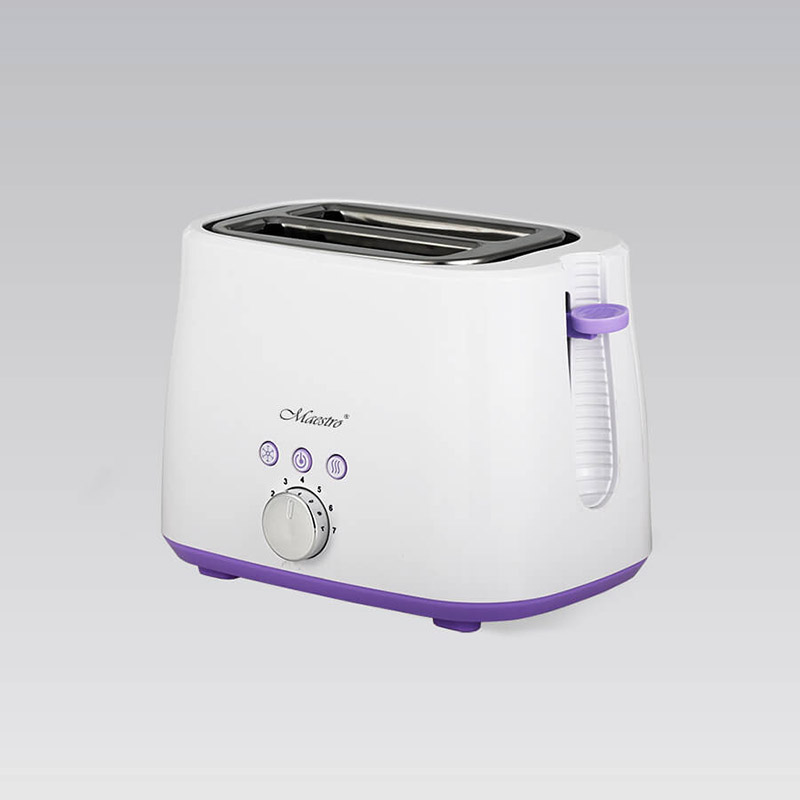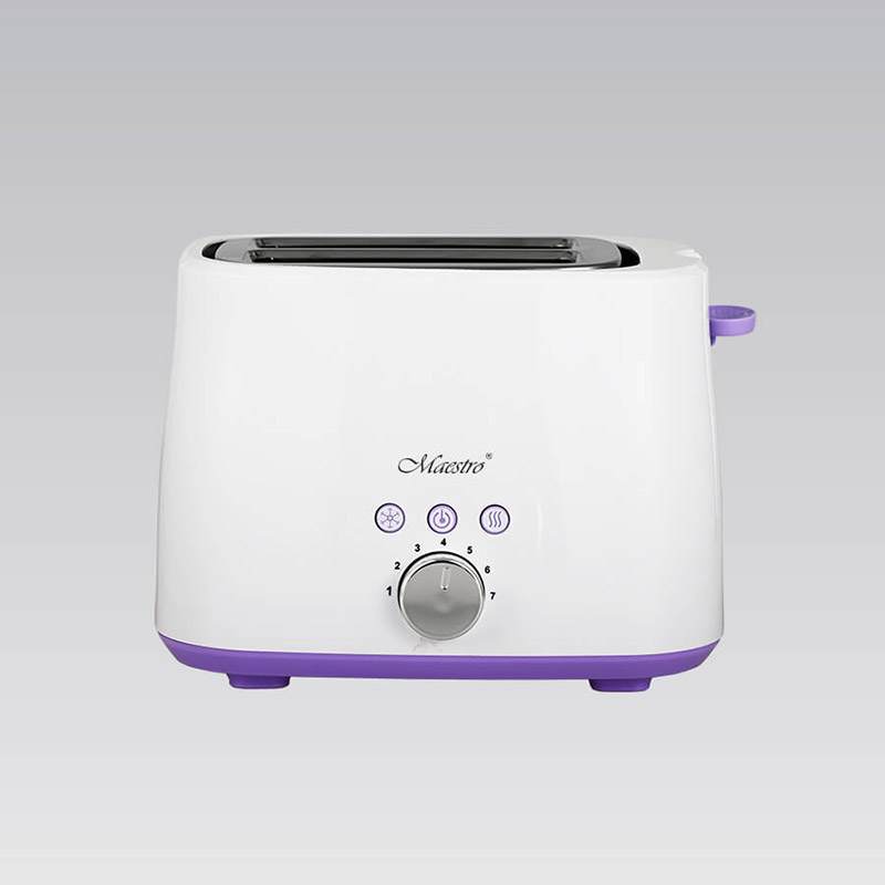 Тостер - идеальное решение для быстрого приготовления поджаренных ломтей хлеба. Модель выполнена в бело цвете с фиолетовыми акцентами. Предусмотрена возможность поджаривания толстых ломтиков хлеба. Удобная функция отмены обеспечивает простоту управления, делая использование тостера максимально простым и комфортным. Ненагревающийся корпус и съемный поддон для крошек делают тостер безопасным и легким в уходе.
