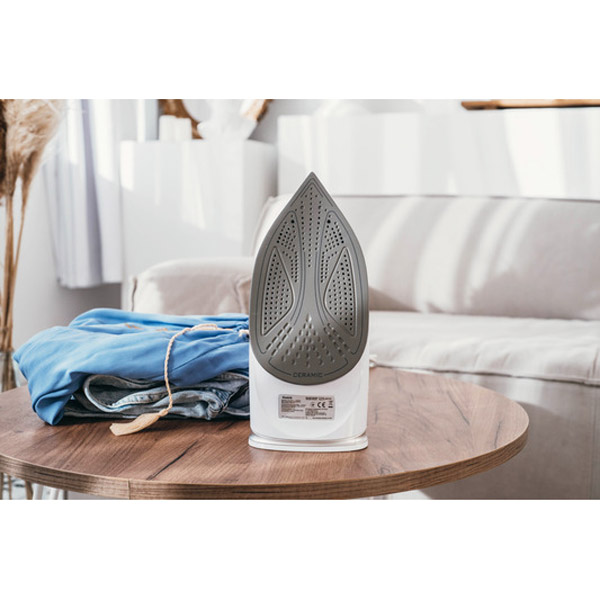 Особенности: мерный стакан в комплекте, система самоочистки от накипи, вертикальное отпаривание, паровой удар, функция «Спрей», функция «Антикапля»