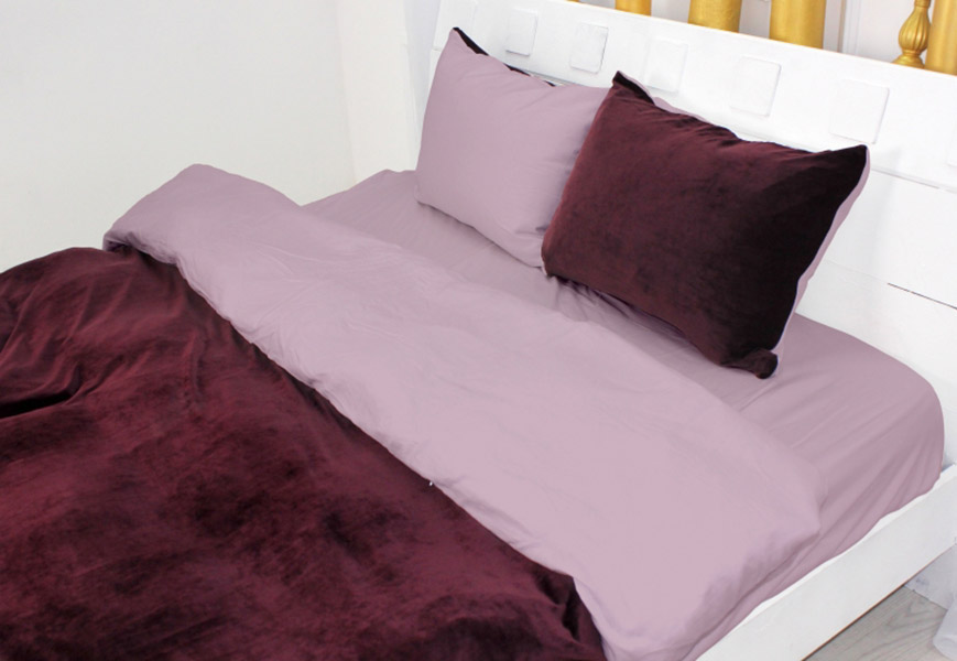 Двухцветный красивый комплект премиум-класса. Постельное белье станет стильным акцентом в спальне, подарит уют и комфорт во время сна. Одна сторона бордового цвета, выполнена из велюра. Ткань бархатистая на ощупь, с мягким ворсом, плотная и теплая, отлично подходит для зимних холодов. Другая сторона цвета пудры, выполнена из итальянского сатина. Ткань из натурального хлопка, гладкая, нежная и шелковистая на ощупь, отлично пропускает воздух, прочная и долговечная в эксплуатации.