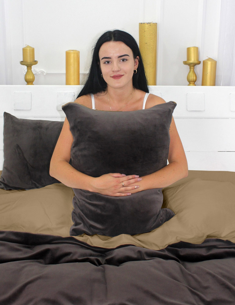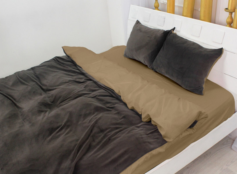 Двухцветный комплект премиум-класса коричневых оттенков. Коллекция Winter Delicate из велюра и сатина создана для холодных зимних ночей. Постельное белье обеспечит уют и комфорт во время сна, станет стильным акцентом в спальне. Одна сторона коричневого цвета, выполнена из велюра. Ткань бархатистая на ощупь, с мягким ворсом, плотная и теплая, отлично подходит для зимы. Другая сторона также коричневая, выполнена из итальянского сатина. Ткань из натурального хлопка, гладкая, нежная и шелковистая на ощупь, отлично пропускает воздух, прочная и долговечная в эксплуатации.