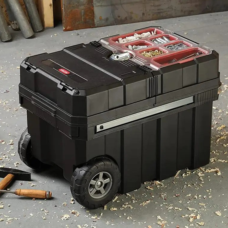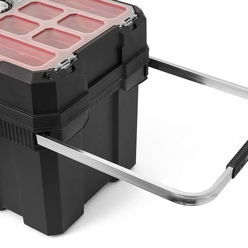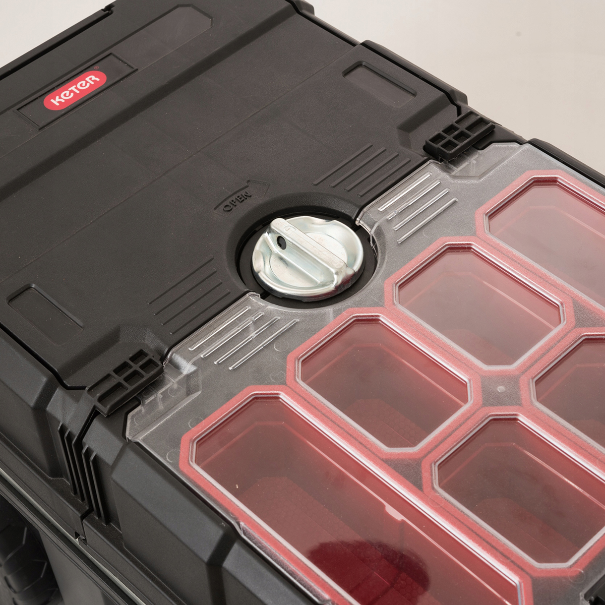 Ящик Curver Masterloader 17191709 имеет большое пространство для хранения, содержимое которого отчетливо видно через прозрачную крышку. Содержащиеся внутри ящика контейнеры с инструментами можно легко вынимать, что значительно облегчает работу с хранящимися в них мелкими элементами типа болтов, гаек, гвоздей. Ящик выполнен из прочного пластика, что обеспечивает его долговечность и устойчивость к механическим повреждениям.