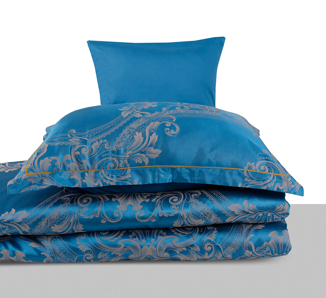Роскошный комплект синего цвета с изысканным жаккардовым растительным узором. Постельное белье станет достойным украшением вашей спальни, создаст в комнате атмосферу гармонии. Комплект мягкий и шелковистый на ощупь, выполнен из волокон модала и хлопка, подарит максимально комфортный и приятный сон.