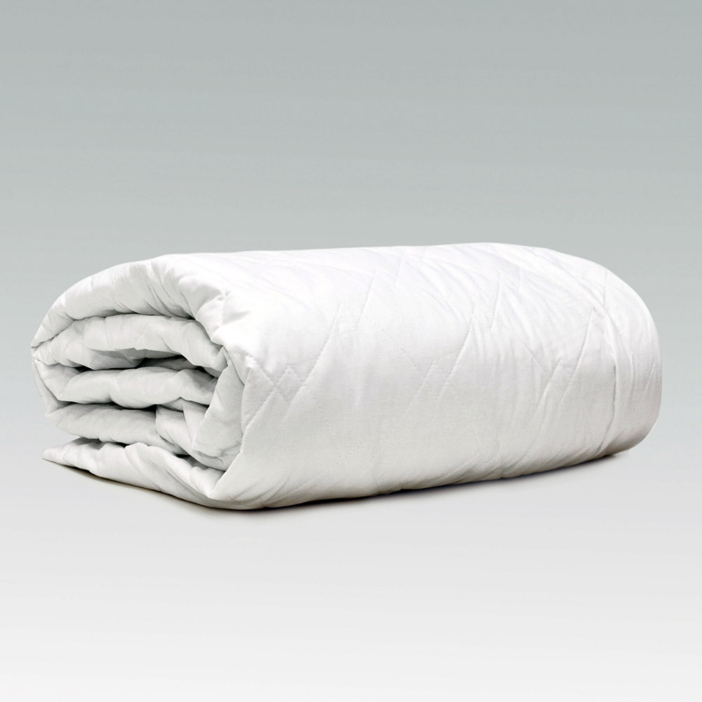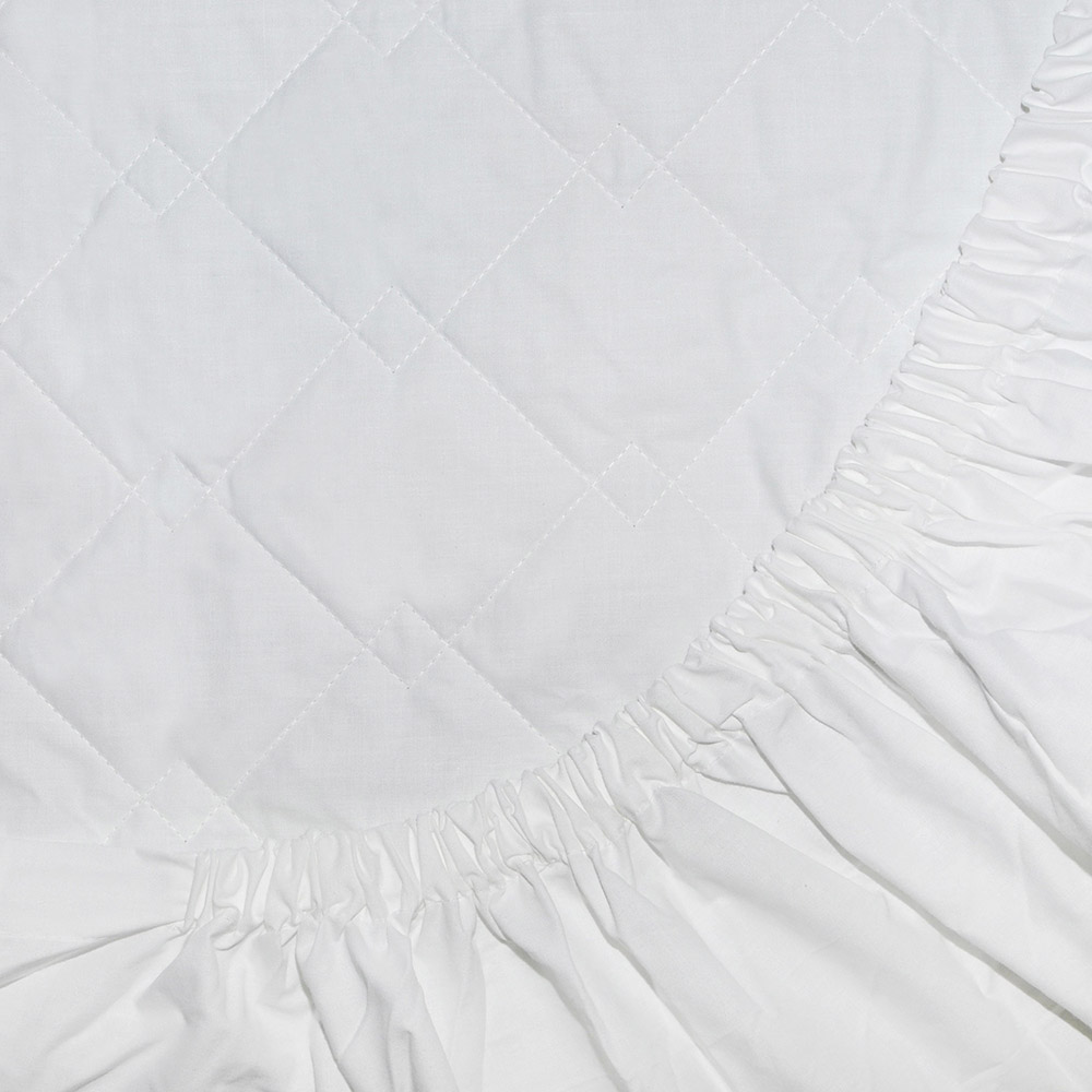 Натяжний стьобаний наматрацник з натуральної бавовняної тканини білого кольору. Наповнювач із силіконового волокна м'який, не викликає алергії, практичний в експлуатації. Наматрацник легко одягається на матрац і надійно фіксується завдяки гумці по периметру.