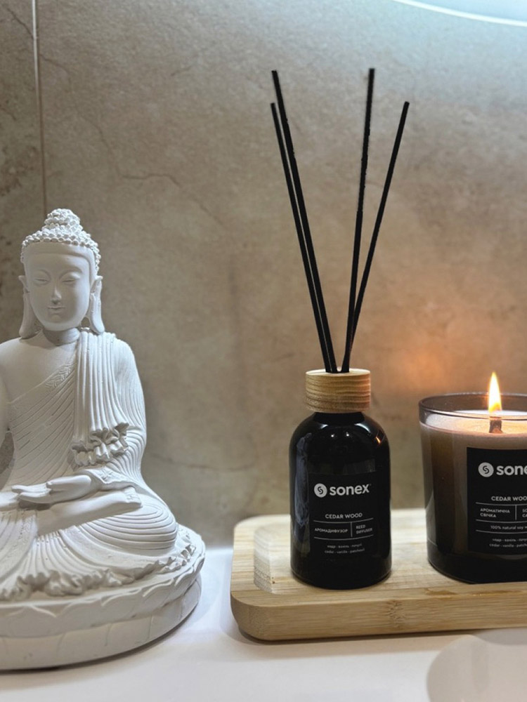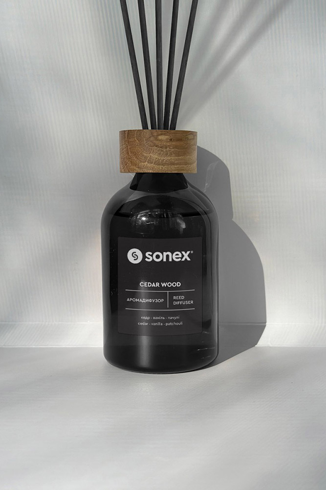 Sonex Home Collection - преміум колекція ароматів для дому. Вишуканий дизайн в поєднанні з особливо вишуканими композиціями ароматів. Кожен продукт відображає гармонійне поєднання естетики і мистецтва, натхненного витоками високої парфумерії. Високоякісні та безпечні матеріали з ретельно підібраними ароматами роблять колекцію символом елегантності та ексклюзивності - ідеально підходять для додавання індивідуальності та стилю будь-якій кімнаті. У лінійці використовуються натуральні ароматичні олії з Франції, створені разом з кращими французькими парфумерами.