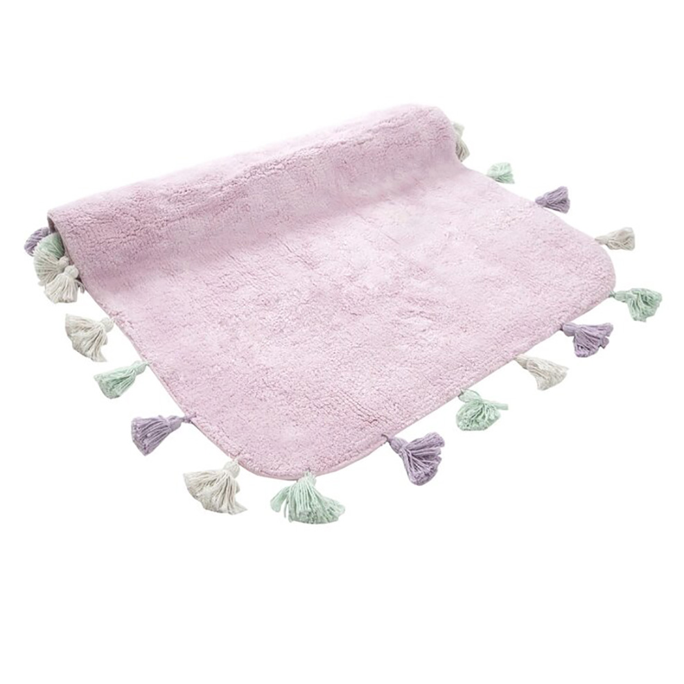 Килимок з якісного натурального бавовни з м'яким ворсом і декоративними різноколірними кистями. Килимок стане гідною прикрасою ванної кімнати і зробить інтер'єр більш затишним.