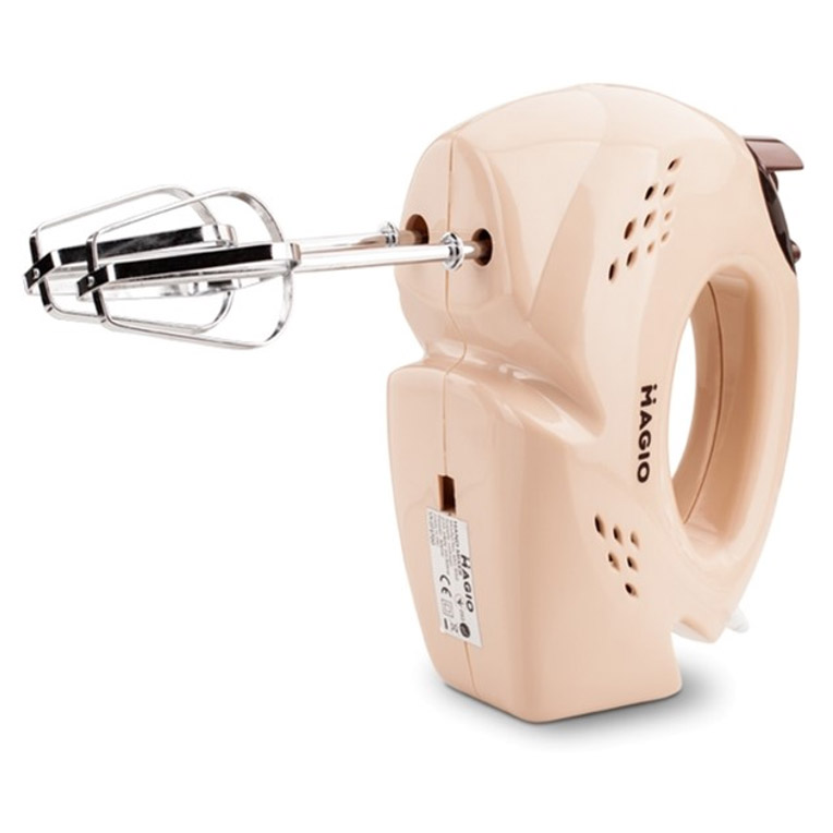 Зручний та функціональний прилад для замішування тіста, приготування коктейлів, мусів та кремів. Насадки легко знімаються кнопкою, а ергономічна ручка робить роботу комфортною навіть за тривалого використання. Потужність 300 Вт забезпечує швидку та якісну роботу. Функція «Турбо» дозволяє швидко збільшити швидкість обертання для швидкого розм'якшення грудок у тесті. Magio - це сучасний бренд побутової техніки, що об'єднує стильний дизайн, практичність і надійність. У лінійці представлені електрочайники, кавоварки, тостери, блендери, ваги, праски та інші пристрої для кухні та дому. Продукція Magio вирізняється зручністю, функціональністю та доступною ціною, допомагаючи заощаджувати час і роблячи повсякденні турботи простішими та комфортнішими.