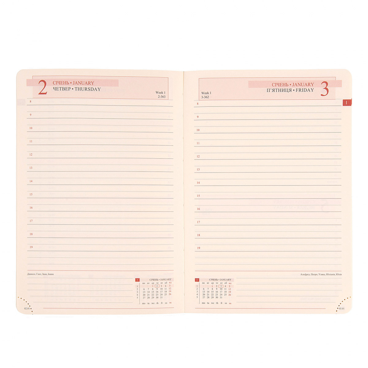 Сучасний та зручний планувальник для організації справ. Датовані сторінки з погодинною розміткою допомагають планувати день і не пропускати важливих завдань, а кремовий папір комфортний для тривалого листа. Наприкінці блоку є додаткові сторінки для нотаток, ескізів та контактів, а дві ляси та вертикальна гумка полегшують швидкий пошук потрібної сторінки. Обкладинка із якісного екошкіри зберігає презентабельний вигляд, а стильні деталі з патріотичним мотивом додають індивідуальності.
