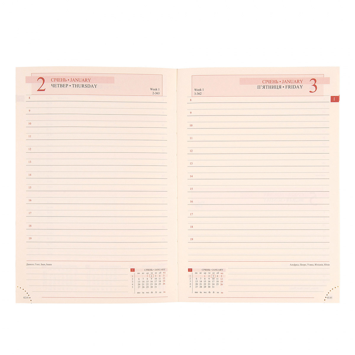 Компактний датований щоденник створений для тих, хто цінує порядок і стиль. Обкладинка з якісного екошкіри та вишуканий дизайн з геометричними півколами та фольгованими акцентами роблять його ефектним аксесуаром. Усередині — датовані сторінки з погодинною розміткою, що дозволяють планувати день за хвилинами і не втрачати важливого значення. Кремовий папір приємний очам, а два лясі допомагають швидко знаходити потрібні записи. Цей щоденник з колекції Apiro поєднує функціональність та естетику, налаштовуючи на продуктивність щодня.
