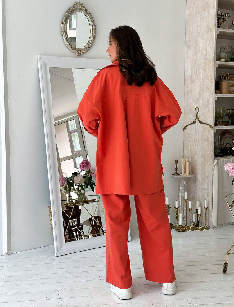 Стильна яскрава сорочка коралового кольору. Модель оверсайз, вільного крою, з накладними кишенями на грудях, ґудзиками та довгими рукавами. Сорочка виконана з натуральної тканини на основі бавовни та льону. Матеріал легкий і приємний на дотик, чудово пропускає повітря, гіпоалергенний, не електризується. Ця сорочка стане відмінним вибором для модних жінок, які прагнуть виглядати стильно та почуватися комфортно.