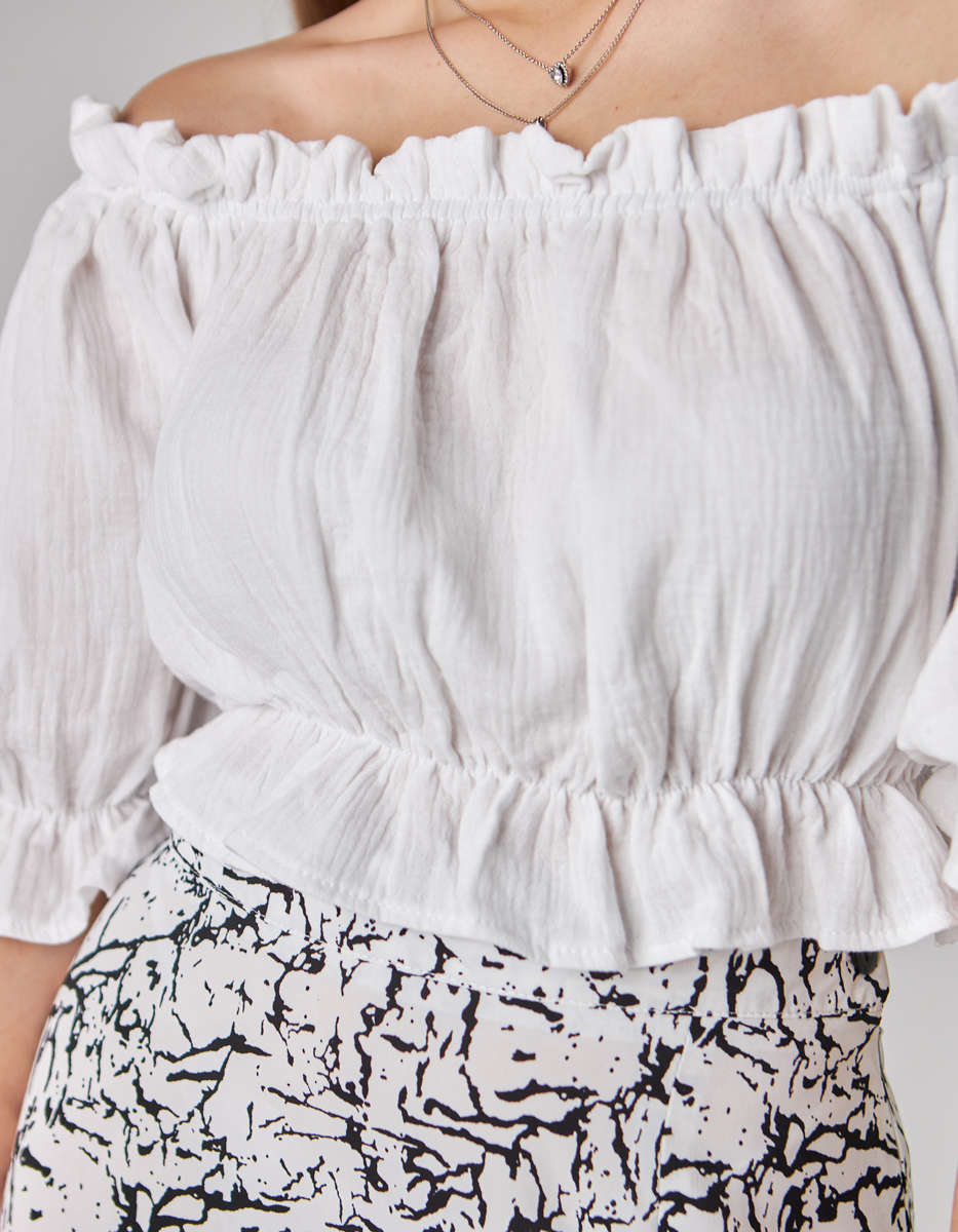 Блуза літня Wear me біла CB000003393. Стильна літня блуза із приємного на дотик матеріалу у білому кольорі.
